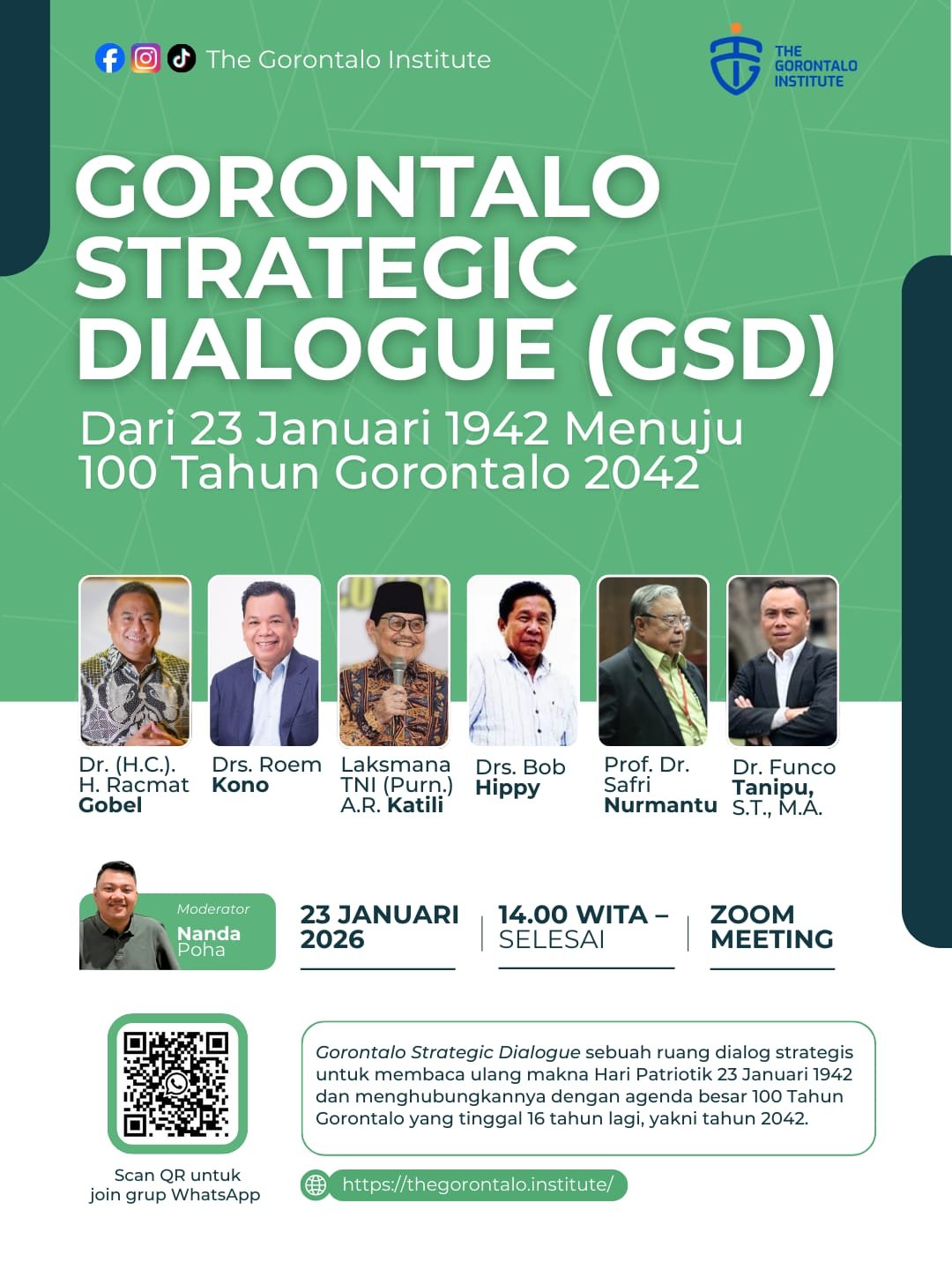 GORONTALO, Kambungu.id— The Gorontalo Institute akan menyelenggarakan Gorontalo Strategic Dialogue (GSD) pada Jumat, 23 Januari 2026, pukul 14.00 WITA hingga selesai. Kegiatan ini akan dilaksanakan secara daring melalui Zoom Meeting…
